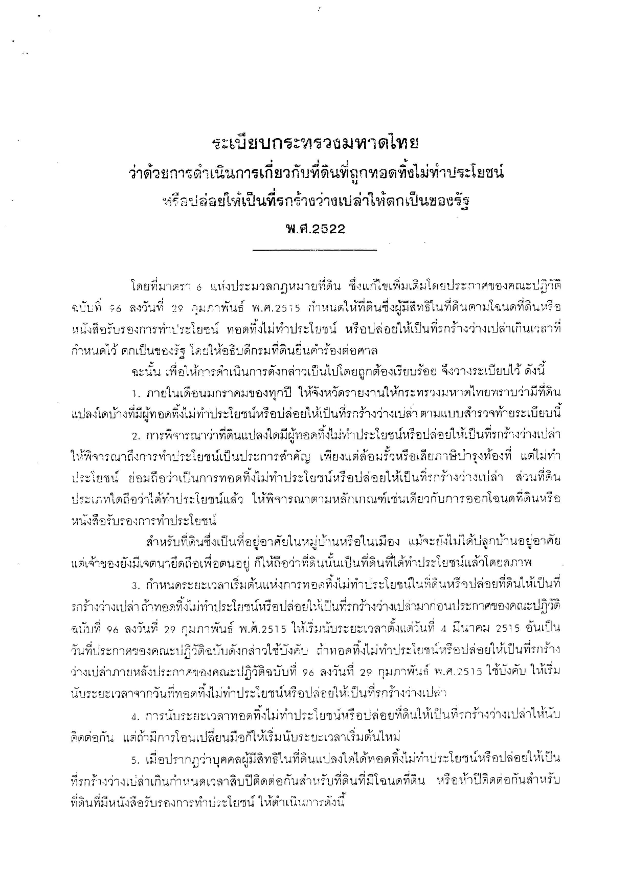 ระเบียบกระทรวงมหาดไทย ว่าด้วยการดำเนินการเกี่ยวกับที่ดินที่ถูกทอดทิ้งไม่ทำประโยชน์ หรือปล่อยให้เป็นที่รกร้างว่างเปล่าให้ตกเป็นของรัฐ พ.ศ. 2522